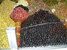 «Чёрные оливки» (маслины) бывают двух видов: плоды, которые созрели непосредственно на дереве и те которые получили свой цвет искусственно. Чёрные оливки — условное обозначение, так как созревшие натуральным образом плоды редко бывают абсолютно чёрными. Можно различить оттенки темно-фиолетового, чёрного, красновато-коричневого или коричневого цвета[6].