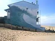 - Пример монументальной живописи «Большая волна», работы Доминика Энтони. Реалистичное изображение доминирует над дюнами и приморским бульваром.