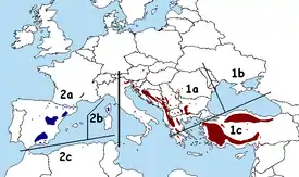 Ареал, по большей части, находится в северном Средиземноморье, есть несколько районов в Марокко и Алжире.