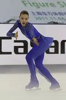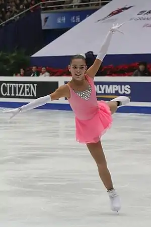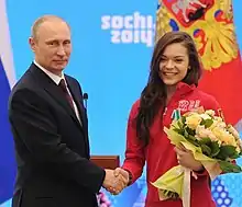 ![]() Аделина Сотникова при награждении олимпийской медалью в Сочи 2014. | ||||