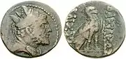 | Монета царя Абдисара, 210 год до н. э. | Монета царя Зареха, 190 год до н. э. | Монета царя Аркатиаса, ок. 190-175 гг до н. э. | Монета царя Морфилига, 150 год до н. э. |