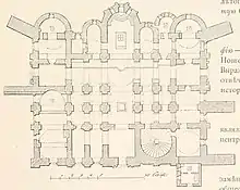 Софийский собор был выполнен в византийском стиле, имел пирамидальную структуру и 6 куполов.