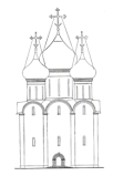 Софийский собор до 1613 г. по В. С. Баниге с предполагаемыми шлемовидными завершениями глав