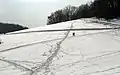 В 1872 году промышленник Георг Зигль устроил к востоку от луга, от долины ручья Хальтербах (Halterbach), фуникулёр. Его длина составляла 682 м, высота подъёма — 108 м. Это было, во многом, экспериментальное сооружение: вместо одной колеи с разъездами, фуникулёр был двухколейным. Благодаря этому, работа подъёмника требовала лишь несколько лошадиных сил, за счёт использования идеи противовеса.[1]