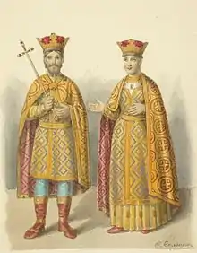 ![]() Василий Дмитриевич и Софья Витовтовна (шитье на саккосе митрополита Фотия) | |