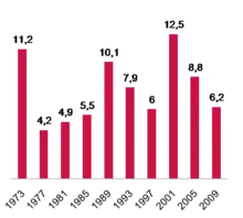 | 2005 | 8,8 ▼ | 15 из 169 |