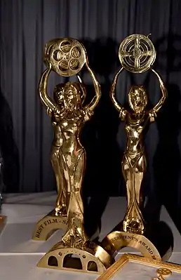 Основные номинанты получили позолоченные статуэтки богини радуги Ириды, созданные московским скульптором и художником Ириной Лагошиной.