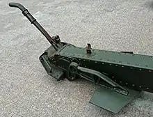 При выстреле из орудия станок, удерживаемый сошником, остается на месте, орудие же вместе с салазками, обоймой и тормозным цилиндром движется назад, направляемое полозками, причём часть энергии отдачи поглощается гидравлическим тормозом, а остальная идет на сжатие буферов накатника[3]. При езде (перемещении) сошник откидывается в транспортное положение.