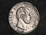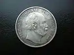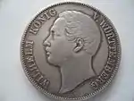 Королевство Вюртемберг являлось одним из южнонемецких государств. Наряду со своими соседями Баденом и Баварией Вюртемберг примкнул в 1837 году к Южно-Германскому монетному союзу, а затем в 1857 году к Венской монетной конвенции. С 1857 по 1871 годы в нём правили короли Вильгельм I и Карл I, чьи изображения помещены на аверс союзных талеров. Как и в других южнонемецких государствах данная денежная единица вытеснила циркулировавший ранее гульден. При этом разменные монеты продолжали чеканить либо с обозначением номинала в ½ гульдена, либо в крейцерах (60 крейцеров = 1 гульден). С 1857 по 1871 годы в Вюртемберге было выпущено несколько миллионов союзных талеров и ни одной монеты стоимостью 1 гульден[34].