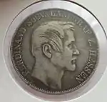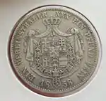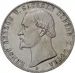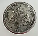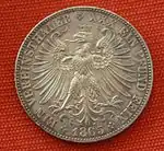 Союзные талеры, выпускаемые в курфюршестве с 1858 по 1865 годы, содержали изображение монарха на аверсе и герб на реверсе. Существует два типа данных монет — с и без знака медальерного мастера Кристофа Пфойфера «C. P.»[49].