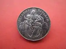 Мадонненталер содержит изображение мадонны с младенцем. Особенностью данных монет с казалось бы нейтральным сюжетом, являлся выпуск лишь в тех государствах, население которых исповедовало католичество. В 1609 году герцог Баварии Максимилиан основал католическую лигу, которая объединила ряд германских княжеств накануне религиозной Тридцатилетней войны. Мадонненталеры стали характерными для этих стран денежными единицами[18]. Хоть монеты с изображением мадонны с младенцем и продолжали чеканить позднее окончания религиозных войн, их выпуск производился лишь в государствах с преимущественно католическим населением.