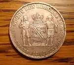 Великое герцогство Баден располагалось на юго-западе Германского союза. Как и другие южные немецкие государства в 1837 году Баден вошёл в Южно-Германский монетный союз, основной денежной единицей которого стал гульден[16]. Экономические последствия Венской монетной конвенции привели к тому, что союзный талер стал основным расчётным средством во всех немецких государствах. В результате, Баден, как и другие южнонемецкие государства, стал преимущественно чеканить талеры. Так, с 1857 по 1871 год в нём было отчеканено менее 300 тысяч экземпляров монет номиналом в 1 гульден и более нескольких миллионов союзных талеров. Следует отметить, что все разменные монеты продолжали выпускать в крейцерах и производных от гульдена[22].