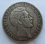 В Средние века из серебра рудников Брауншвейга чеканили множество монет талерового типа. Некоторые из них получили собственное название, как к примеру талер с дикарём[27], на котором изображался мифологический великан, держащий в руках вырванное дерево[28][29]. В период с 1857 по 1871 годы Брауншвейг выпускал относительно небольшое количество монет. При этом денежная система герцогства несколько отличалась от прусской — один союзный талер Брауншвейга соответствовал 30 грошенам, каждый из которых равнялся 10 пфеннигам, а не 12, как в Пруссии[30].
