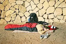 Детские спальные мешки отличаются от обычных спальных мешков по дизайну и назначению, они предназначены в первую очередь для использования в помещении, а не на улице, и обычно имеют отверстия для рук или рукава.[3]