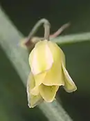 Растения двудомные. Цветки беловато-желтоватые, по 1—2 на более-менее длинных, сочленённых у середины или несколько ниже или выше ножках и расположенные как по главной оси, так и на ветвях; околоцветник колокольчато-воронковидный, зеленоватый, с продолговатыми долями. Мужские цветки около 5 мм длиной, с пыльниками почти равными нитям тычинок. Пестичные цветки вдвое мельче. Цветёт в мае — июне.