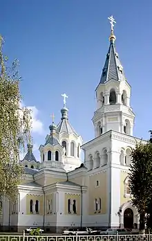 Собор возводился на месте разрушенной в 1771 году Василианской церкви в период с 1866 по 1874 год архитекторами К. К. Рахау, Э. И. Жибером и В. Г. Шаламовым. В связи со сложностью возведения в строительстве принимали участие специалисты, работавшие в 1818—1858 годах в Исаакиевском соборе в Санкт-Петербурге. Настенное художественное оформление и иконы принадлежат кисти академика художеств Михаила Васильева.