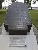 Надгробная плита на предполагаемом изначальном местоположении могилы Кузьмы Минина (за часовней)
