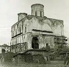 После 1920 года памятник подвергся разорению и едва избежал полного уничтожения. Из пяти барабанов уцелели только три, и те оказались обезглавленными.[1] По всей высоте храма прошла хорошо видимая на фотографиях трещина, угрожающая его полным разрушением. Во 2-й половине XX века вместо реставрации памятник был законсервирован «до лучших времён», стены скреплены металлическими стяжками, однако колокольня была отреставрирована.