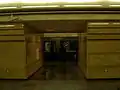 Боковые и центральный залы соединяют семь проёмов для прохода, длина пилонов — от 10 до 23 метров, ширина проёмов — 3 метра. Выход в город находится в центре зала. Наклонный ход имеет четыре эскалатора и расположен в северном торце станции.