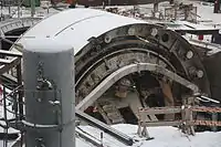 Направляющая тали, используемой для перемещения грузов во время строительства наклонного хода, 4 июля 2013 года