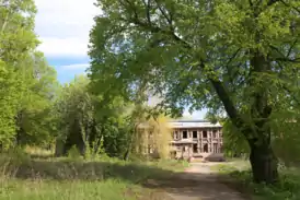 В 1871 году владельцем усадьбы стал граф Владимир Орлов-Давыдов, который сразу же приступил к строительству главного дома. Проект двухэтажного деревянного усадебного дома был разработан Робертом Андреевичем Гёдике и внешне был похож на дворцы эпохи Возрождения. Строительные работы были завершены в 1872 году. На сегодняшний день от прежнего здания остались только деревянные оштукатуренные двухэтажные крылья. Центральный корпус, исключая подвалы, выгорел дотла при пожаре 1961 года и был заменен одноэтажным кирпичным строением, не выдерживающим общий архитектурный стиль.
