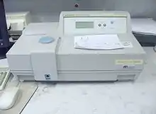 Спектрофотометр является основным прибором, используемым в спектрофотометрии. Обычно используется для измерения спектров пропускания или спектров отражения излучения.[1].