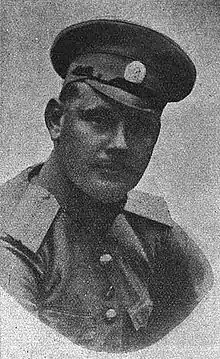 За то, что в бою 21-го сентября 1914 года, будучи окружен сильнейшим противником, пробился, вынеся своих раненых, захватив пленных германцев и не оставив противнику трофеев.