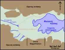 Богатая плодородным илом река сформировала равнину Ламии и сделала болотистым побережье залива Малиакоса. Постоянно уменьшает площадь и глубину залива Малиакоса. Проход Фермопилы был узким в древности, а теперь представляет собой полосу шириной 4 километра[4].
