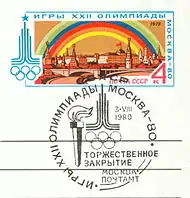 СССР: «Игры XXII Олимпиады. Москва-80. Торжественное закрытие». Спецгашение, 3 августа 1980, Москва |