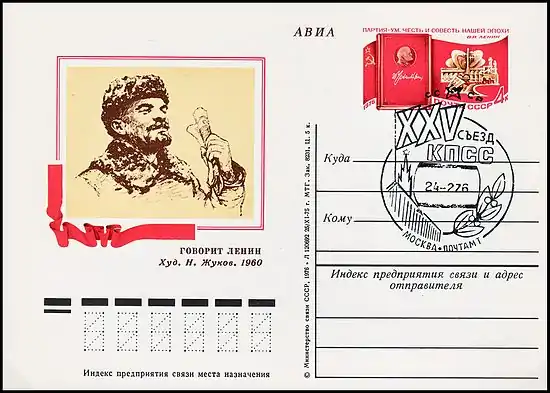 - Якобс В. Специальные гашения, посвящённые партийным съездам // Филателия СССР. — 1976. — № 2. — С. 6—9. — (Рубрика: В помощь лектору).