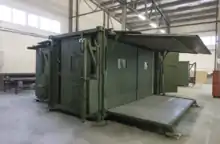 Перспективным направлением завода «Спецтехмаш» является производство кузов-контейнеров переменного объема[13]. Основным преимуществом изделий этого типа по сравнению с контейнерами постоянного объема является возможность увеличения рабочего пространства в 2,5-3 раза. В то же время в сложенном виде габариты контейнера-«бабочки» находятся в пределах нормы для транспортировки по автомобильным и железным дорогам, водными или воздушными судами. Изделие способно менять свою пространственную конфигурацию благодаря раскладным боковым частям. Изделие может использоваться как бытовой, медицинский, банно-прачечный[14] или кухонный модуль[15], а также пункт управления или мобильное офисное помещение.
