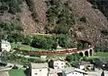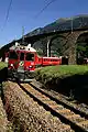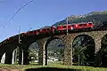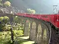 ![]() Бернинский экспресс проходит по спиральному виадуку в Брусио | |