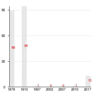 Число жителей по семейным спискам 1879 г.: 36 м. п., 53 ж. п.; по приходским сведениям 1879 г.: 36 м. п., 45 ж. п.[3]