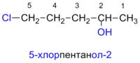 - Если при различных вариантах нумерации цепи гидроксильная группа получает один и тот же локант, то цепь нумеруют в том направлении, при котором другой заместитель получает наименьший локант.