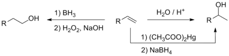 Влияние гидроксильной группы особенно велико на соединения с небольшой углеводородной цепочкой. Так, например, метанол и этанол неограниченно смешиваются с водой и имеют довольно высокие плотности и температуры кипения для своей молекулярной массы, в то время как высшие спирты гидрофобны и мало отличаются по свойствам от соответствующих углеводородов[62].