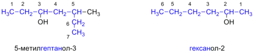 - Родительский углеводород нумеруют в таком направлении, чтобы гидроксильная группа получила наименьший номер в названии. (Если в соединении имеются функциональные группы старше гидроксильной, то это правило применяется к старшей функциональной группе.)