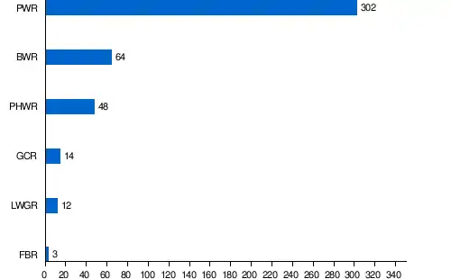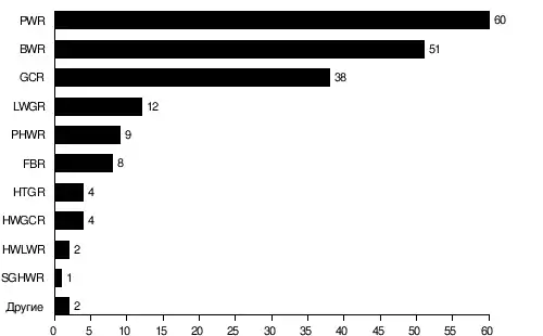 - PWR (англ. Pressurized Water Reactor) — водо-водяной ядерный реактор
