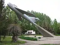 | Фото | МиГ-19 | 01 | г. Запорожье, на пересечении улицы Победы и проспекта им. Жданова (ныне - бульвар им. Шевченко). В 90-е заменён на макет, напоминающий истребитель Лавочкина С. А. |