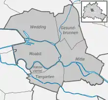 0101 Митте (нем. Mitte) 0102 Моабит (нем. Moabit) 0103 Ганзафиртель (нем. Hansaviertel) 0104 Тиргартен (нем. Tiergarten) 0105 Веддинг (нем. Wedding) 0106 Гезундбруннен (нем. Gesundbrunnen) |