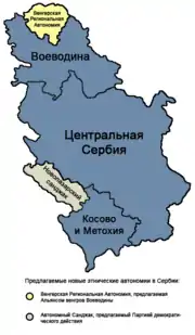 - Воеводинский сепаратизм, подчеркнутый жёлтым цветом