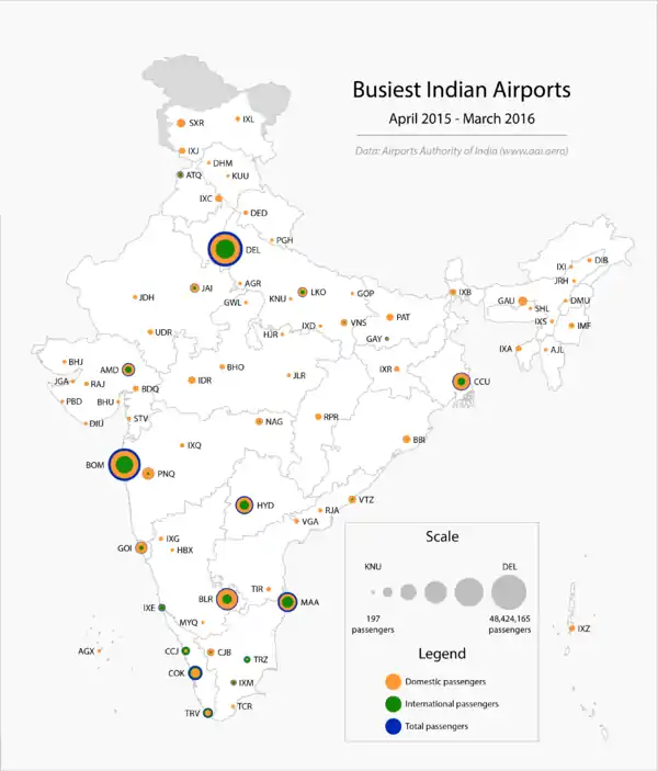 Диаграмма аэропортов Индии.