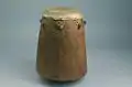 В Китае барабаны, вероятно, произошли от туркестанских и тибетских инструментов примерно в 3500 г. до н. э. Первые из них изготавливались из обожжённой глины, имели цилиндрическую форму. Мембраны изготавливаются из телячьей или свиной кожи, имеют одинаковый размер, часто прибиваются гвоздями без возможности настройки. Барабаны имеют рукояти для переноса, или ставятся на специальные подставки.[9] | |