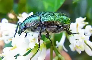 | Насекомые — Insecta, Жесткокрылые — Coleoptera | Гноримус благородный, или зелёный, Gnorimus nobilis | 1 | Не принимались. | Ограничение рубки старых лиственных деревьев, расчистки лесов и старых парков, запрет сведения аллей дуба и липы вдоль дорог. Лесовозобновление посадками дуба и других широколиственных пород. Организация ООПТ в Светлогорском лесу. Определение целесообразности и возможности разведения с последующей реинтродукцией в места, пригодные для обитания вида. | ![]() |