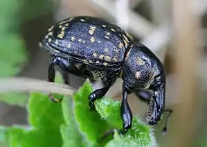 | Насекомые — Insecta, Жесткокрылые — Coleoptera | Липарус гладконосый, Liparus glabrirostris | 3 | Не принимались. | Сохранение подходящих для обитания вида биотопов и режима пользования пойменных лугов вблизи зрелых лесных массивов. Включение Красного (Виштынецкого) леса в состав системы ООПТ. | ![]() |