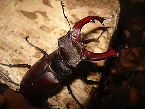 | Насекомые — Insecta, Жесткокрылые — Coleoptera | Жук-олень обыкновенный, Lucanus cervus | 1 | Занесен в Красную книгу России. | Выявление мест обитания вида, придание им статуса памятника природы, последующая строгая охрана и мониторинг.сохранение максимального количества старых широколиственных деревьев и зрелых древостоев. Лесовозобновление посадками дуба. Введение ограничений на выборочные рубки старых широколиственных деревьев при уходе за лесом. Организация ООПТ в Полесском, Приморском и Виштынецком лесах. | ![]() |