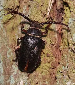 | Насекомые — Insecta, Жесткокрылые — Coleoptera | Дровосек-кожевник, Prionus coriarius | 3 | Не принимались. | Ограничение рубки старых лиственных и хвойных деревьев, запрет выкорчевки пней в местах обитания вида. Организация ООПТ в Светлогорском лесу. Выявление новых мест обитания и мониторинг численности вида. | ![]() |