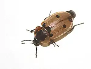 | Насекомые — Insecta, Жесткокрылые — Coleoptera | Рогачик малый, Ceruchus chrysomelinus | 3 | Не принимались. | Сохранение максимального количества старых деревьев, ограничение санитарной рубки старовозрастных елей и берёз, запрет на вывоз трухлявых и упавших толстоствольных деревьев и корчевание еловых пней. Организация ООПТ в Виштынецком лесу. Выявление новых мест обитания и мониторинг численности вида. | ![]() |