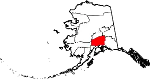 | Матануска-Суситна Matanuska-Susitna Borough | 170 | боро | 1964 | Палмер | 104 365 | 65 417 | 1682 | 63 735 | 1,64 | ![]() |