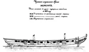 | Меркурий | 20/18 | 29,5 x 9,4[C 41] | 4,2[C 42] | 108 | Севастопольское адмиралтейство | И. Я. Осминин | 1820 год | 1857 год | В 1820 году выходил в практическое плавание в Чёрное море, с 1821 по 1827 год — в крейсерские плавания к берегам Абхазии. Принимал участие в русско-турецкой войне 1828—1829 годов, использовался для крейсерских плаваний, доставки корреспонденции и захвата судов противника. Получил известность благодаря победе в неравном бою с турецкими линейными кораблями «Селимие» и «Реал-бей». После войны в 1830, 1831, 1837—1842, 1846—1848 и 1853 годах принимал участие в операциях русского флота у берегов Кавказа, в том числе в создании Кавказской укрепленной береговой линии. С 1832 по 1836 год находился в Севастополе, зимой 1837—1838 годов там же подвергся тимберовке. С 1843 по 1845 год и с 1849 по 1852 год выходил в практические плавания в Чёрное море в составе эскадр. Во время Крымской войны находился в Николаеве. В 1857 году по причине крайней ветхости был исключён из списков флота и разобран. | [10][83][93] [122][123][124] |