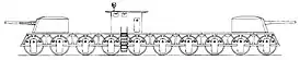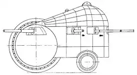 1916—1917 | Не строилась | Проект колёсной боевой машины с ведущим сферическим катком и двумя дополнительными колёсами меньшего диаметра. Вооружение составляли многочисленные пушки калибром от 76,2 до 203 мм и 7,62-мм пулемёты. Масса установки составляла около 192 тонн. Комиссия ГВТУ рассмотрела проект весной 1917 года, но ввиду сомнительных ходовых характеристик и высокой уязвимости машины отклонила его[35]. |